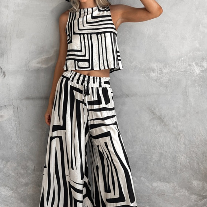 🌴Summer Specials🌴Striped Sleeveless Top & Wide-Leg Pants Set