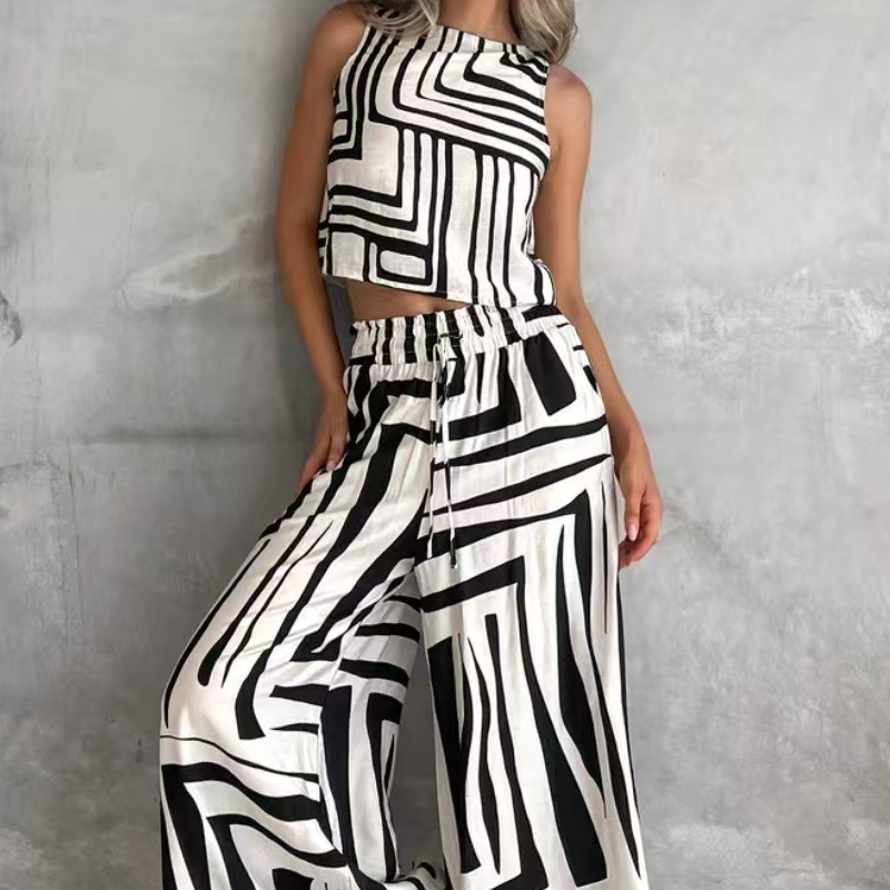 Package Includes: 1×Striped Sleeveless Top & Wide-Leg Pants Set