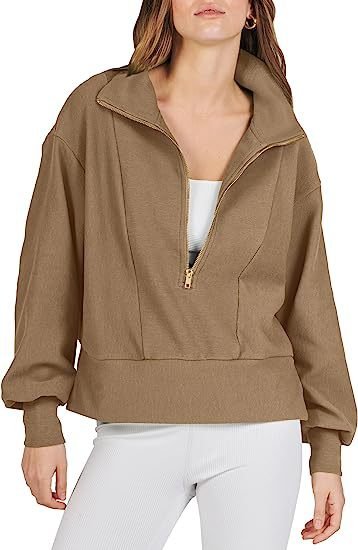 The sweatshirt in solid color is simple yet fashionable. Half-zipper women’s sweatshirts with no hood are easy to put on and take off. Relaxed fit plain cute sweatshirts for women can be dressed up or down. perfect with leggings. jeans or shorts