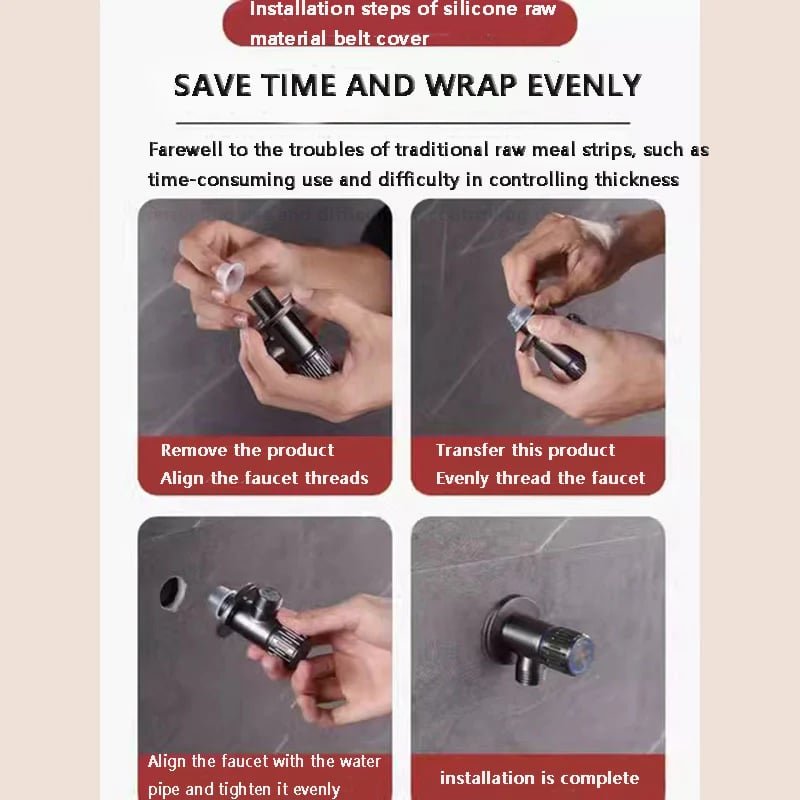 Easy to install: saves time. wraps evenly. and says goodbye to traditional raw material tapes that are time-consuming and difficult to control in thickness. Take out the product. align it with the faucet thread. and evenly insert it into the faucet thread. Align the faucet with the water pipe and tighten it evenly. The installation is complete.
